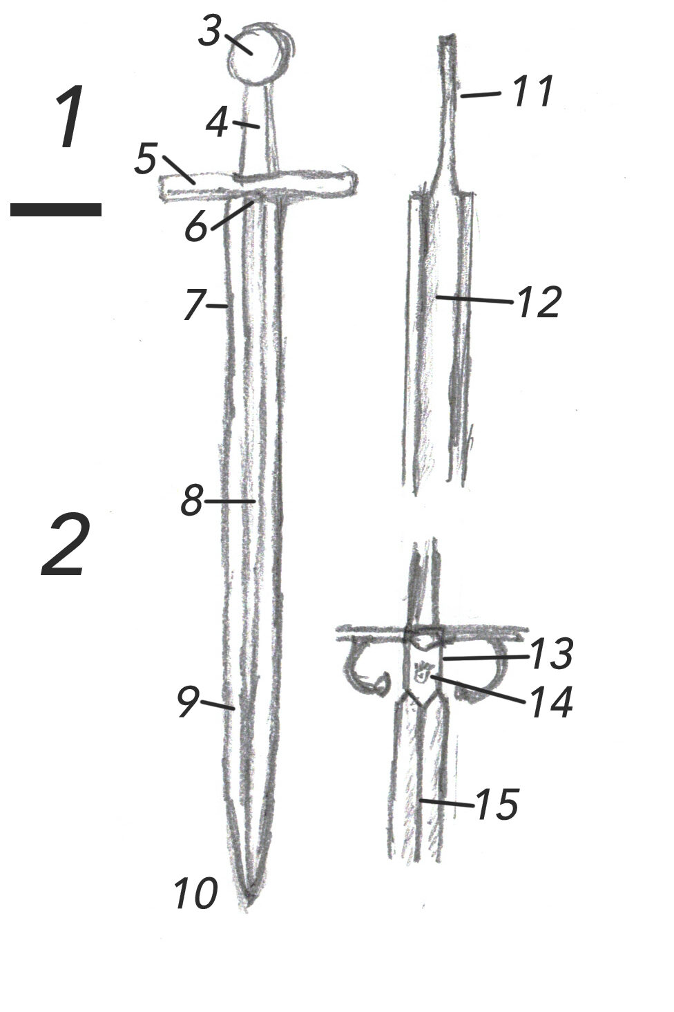 Los nombres de las distintas partes de la espada los puedes encontrar más abajo.